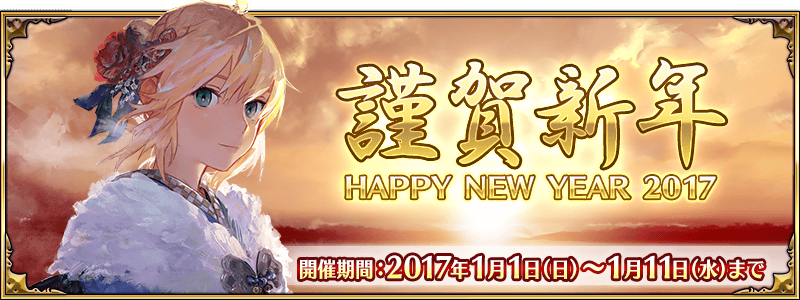 Fgo 2017 正月 礼装- 2152 goemon アプリ 『Fate/Grand Order(FGO)』 で毎年1月1日から実施される 「お正月キャンペーン」 。 18年1月1日がもう間もなくやってくるということで、16年と17年のお正月キャンペーンがどのような内容だったか振り返ってみようと思います。スマートフォン向けアプリ「Fate/Grand Order」の新たなアニメーションプロジェクトが始動!|「Fate/Grand Order 神聖円卓領域キャメロット」 Paladin;